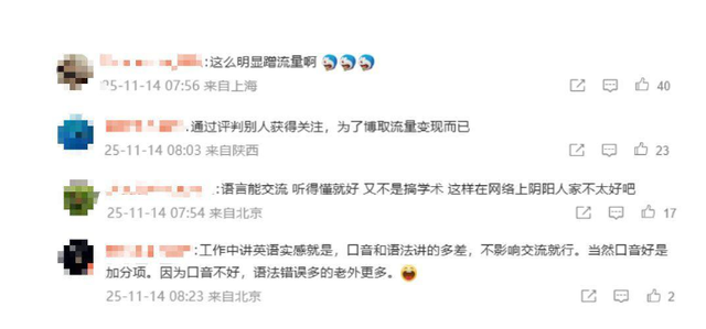对于普通人而言,英语是工具,说了能听明白,能交流就足够了,你非要像搞学术一样刻板,那就真没必要,所以也有网友说如果不是这些专家们非死扣英语语法,恐怕国内学生的英文能力早就大幅度提升了。